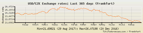Il tasso di cambio USD / CZK