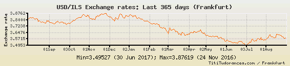 (Dollaro statunitense / Nuovo siclo israeliano)