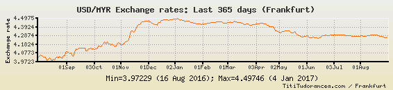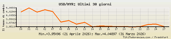 USD/MYR, tassi di cambio storici
