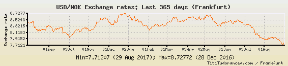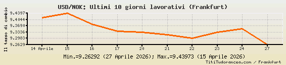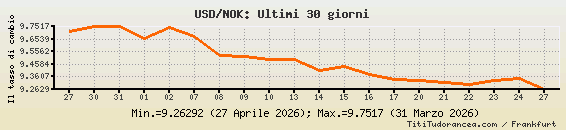 1 Dollaro statunitense = 9.26292 corone norvegesi