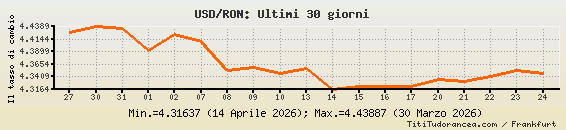 USD/RON, tassi di cambio storici
