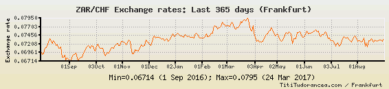 Il tasso di cambio ZAR / CHF