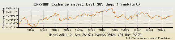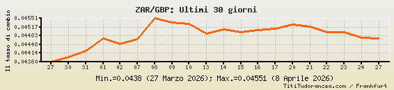 1 Rand sudafricano = 0.04472 sterline britanniche