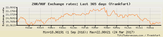 Il tasso di cambio ZAR / HUF