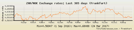 Il tasso di cambio ZAR / NOK