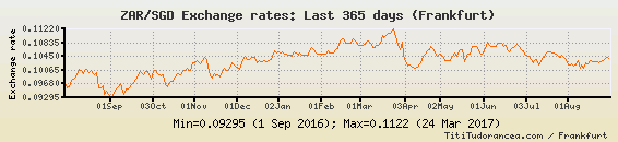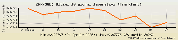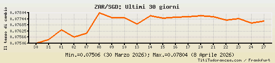1 Rand sudafricano = 0.07724 dollari di Singapore