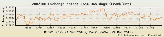 Il tasso di cambio ZAR / THB